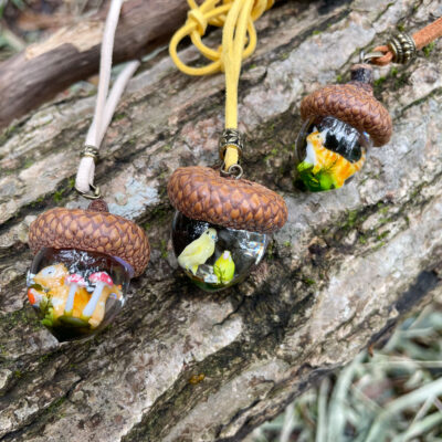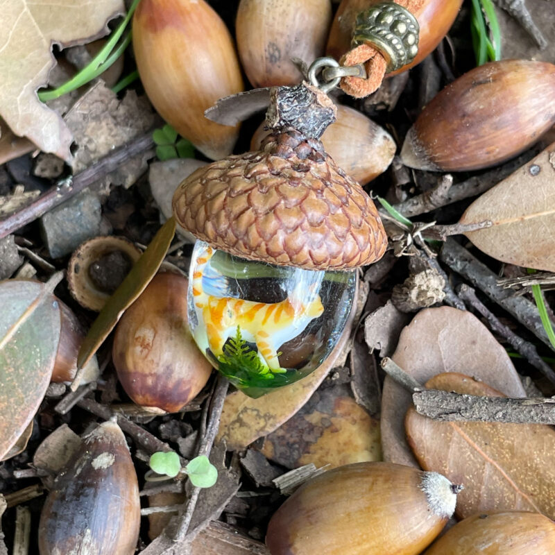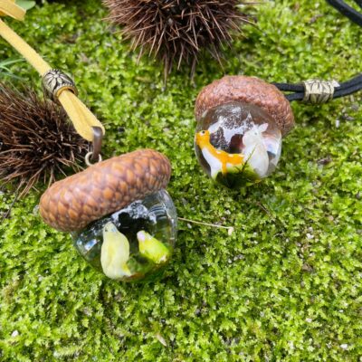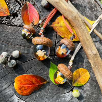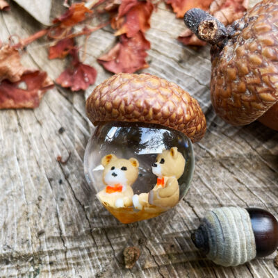 「どんぐりレジン」はワークショップで人気急上昇です。それはかわいいどんぐり帽子➕レジンの実という組み合わせ以上に、超ミニチュアの動物やキノコが入れられるという楽しみがあります。このハンドメイド体験は、モノよりコトであなたの心が満たされるはずです。