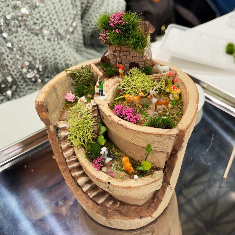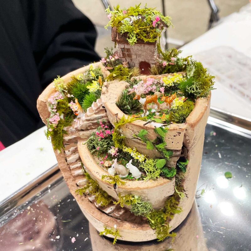 1層目の地面部分の次に、好きな動物やキノコを入れます。(UVライトで硬化)